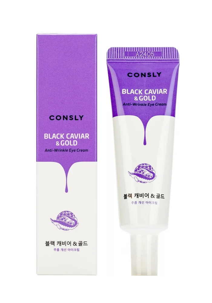 Крем для век от морщин с золотом и экстрактом черной икры Consly Black Caviar & Gold Anti-Wrinkle Eye Cream помогает уменьшить глубокие и мелкие морщины, а также стимулирует синтез коллагена и эластина, придавая коже упругость и свежий вид.