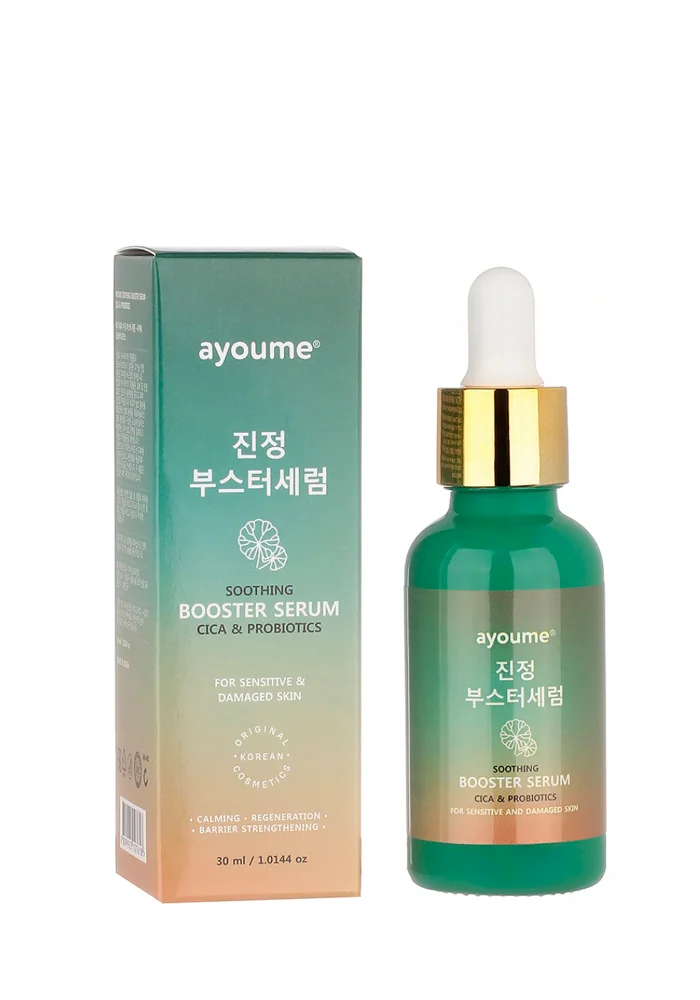 Многофункциональная успокаивающая сыворотка с экстрактом центеллы азиатской и пробиотиками AYOUME Soothing BOOSTER SERUM — Cica & Probiotics бережно ухаживает за кожей.