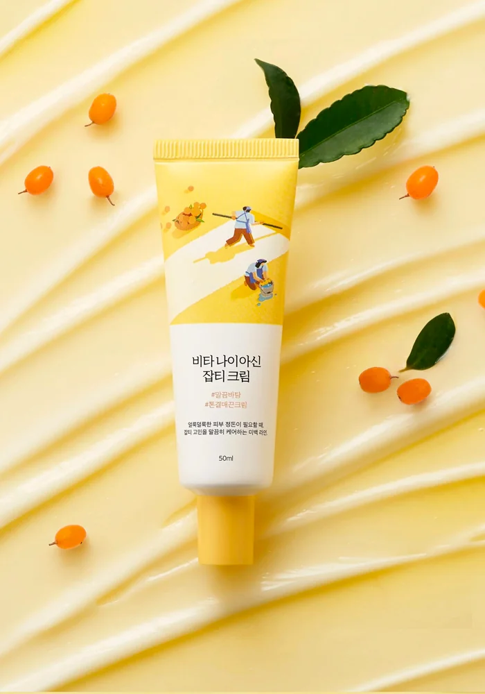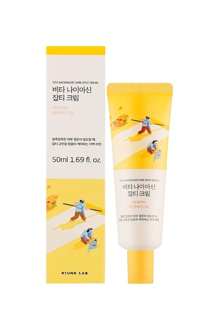Осветляющий крем с ниацинамидом Round Lab Vita Niacinamide Dark Spot Cream выравнивает тон, сокращает гиперпигментацию, веснушки и следы постакне, разглаживает рельеф, делает кожу упругой и сияющей.