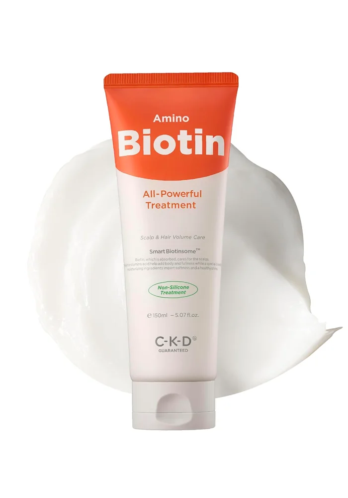 Высокопитательная маска для волос против выпадения CKD Amino Biotin All-Powerful Treatment обладает общим укрепляющим действием, мягко отшелушивает ороговевшие клетки кожи головы и активизирует процессы регенерации. Тонизирует, пробуждает спящие волосяные луковицы, стимулирует рост здоровых и сильных волос.